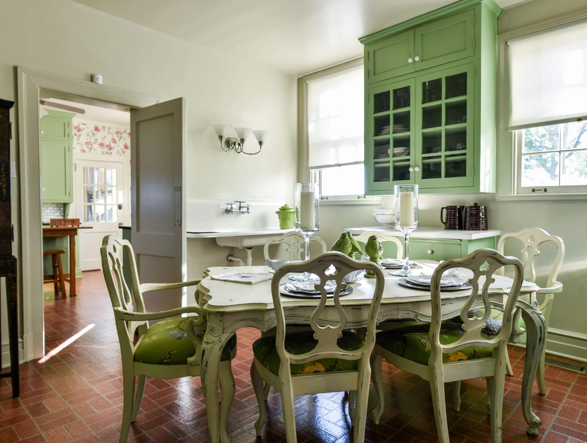 This Tudor-inspired home from the 1930s accommodates up to 13 guests with 6 bedrooms and 4.5 baths. Rental includes use of the custom outdoor fire pit and kitchen.