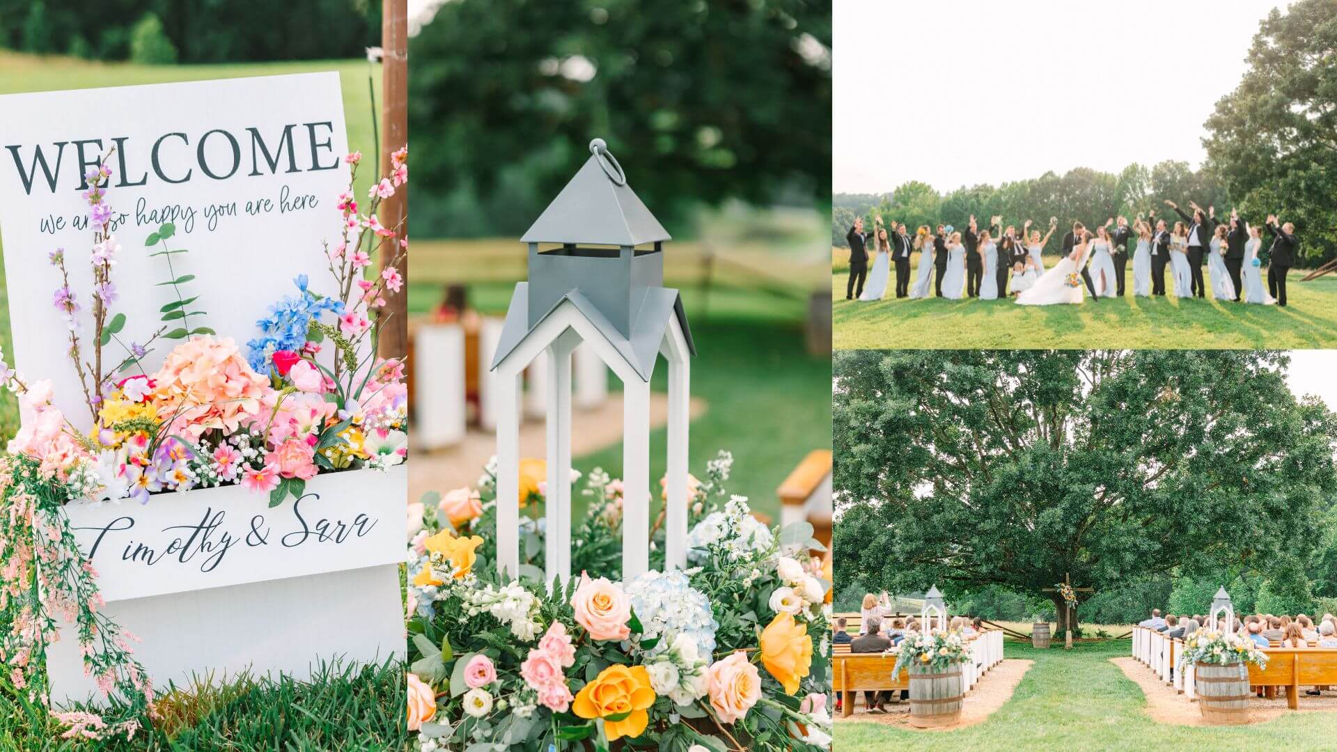 Sara and Tim leaned into springtime, starting with their welcome sign – so fresh!