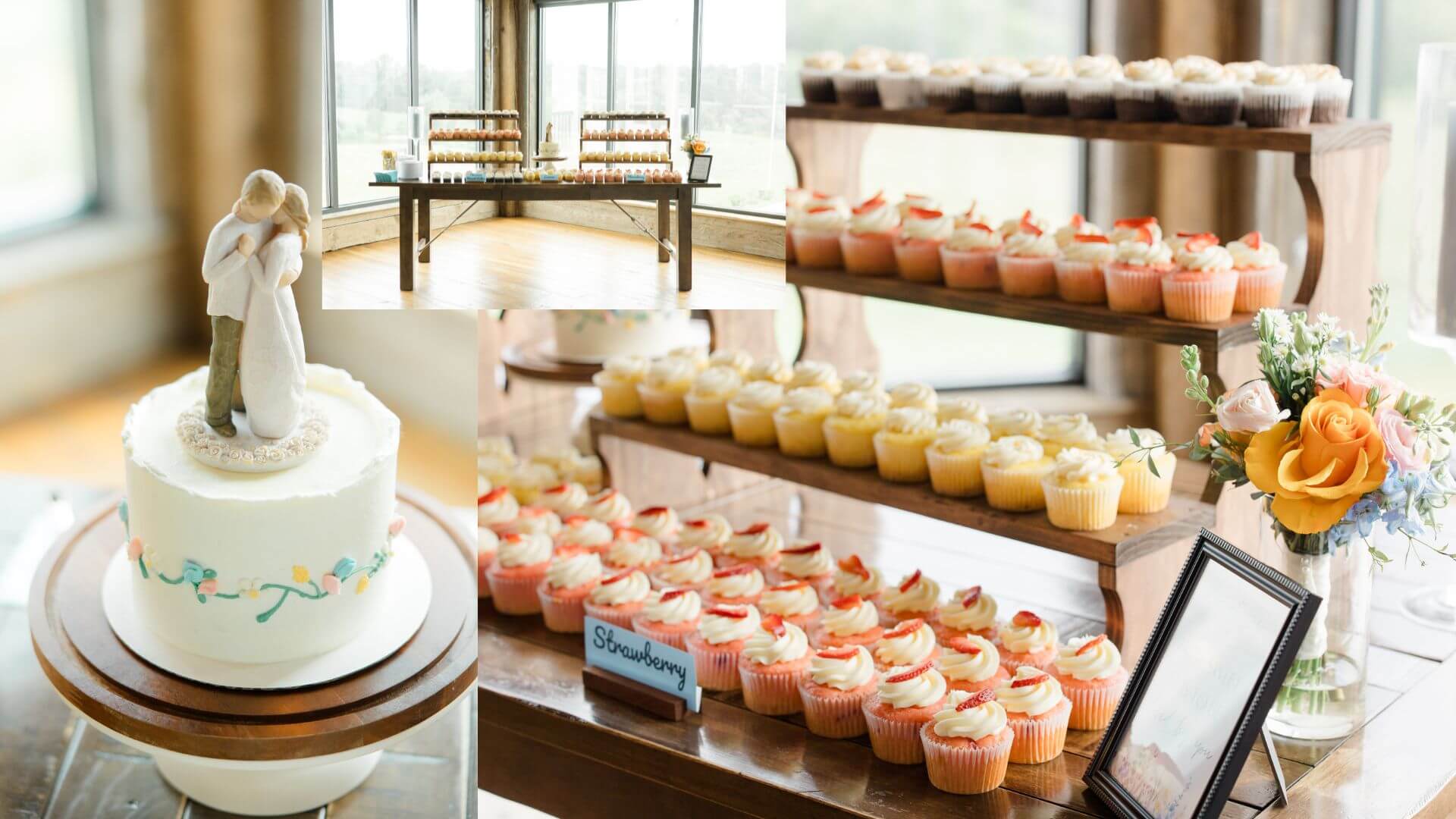 One of the most heartwarming touches of Sara and Tim’s reception had to be the charming cake for the newlyweds and delicious cupcakes for the guests. This dessert showcase was lovingly created by Sara’s sister Suzzie.