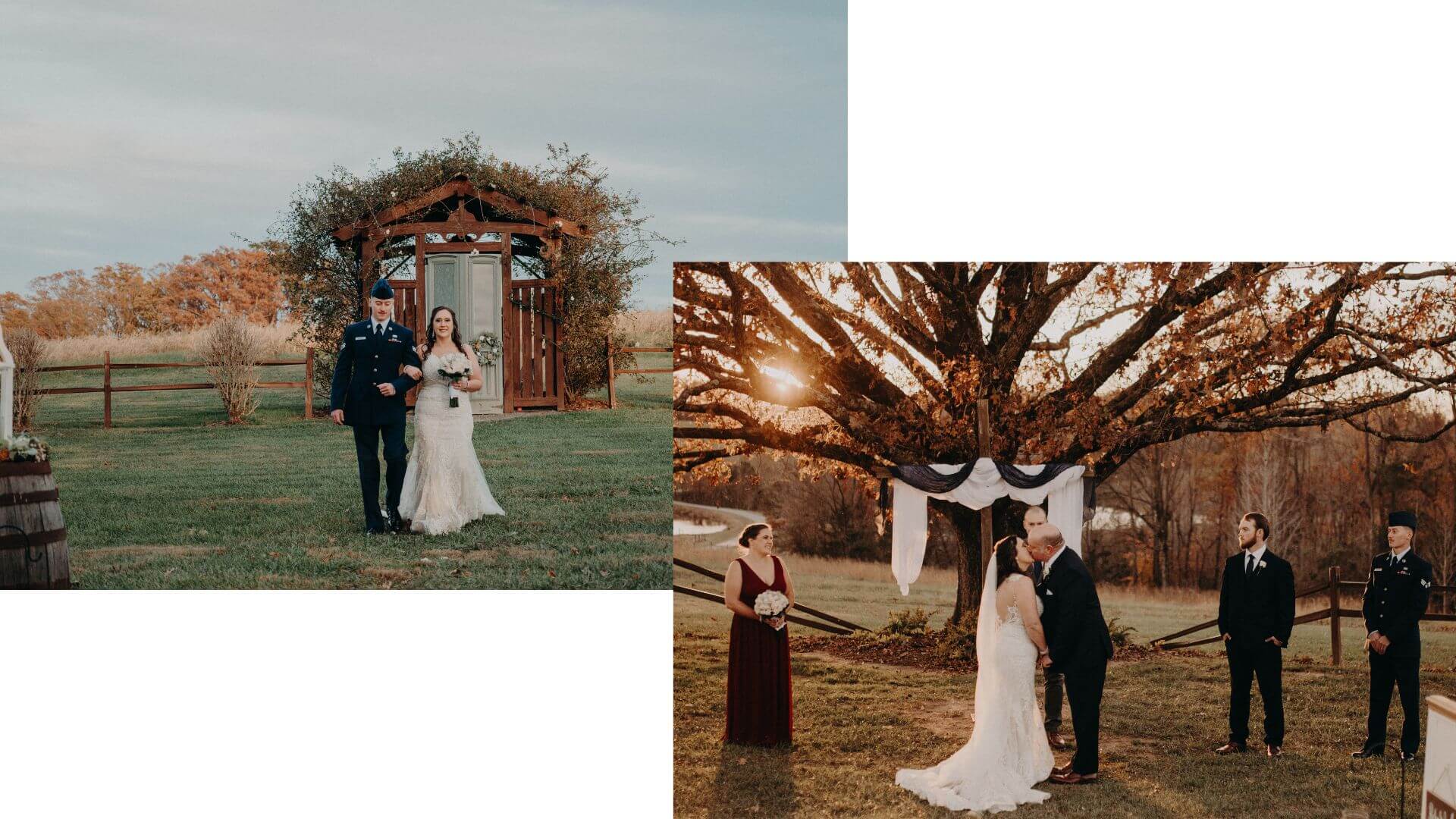 Says Sheree, “The old oak tree where we had the ceremony and the fall colors were absolutely beautiful. There was a windstorm earlier, and we weren’t uncertain how many leaves would be left on the trees. But as you can see from the photos, it was gorgeous.”